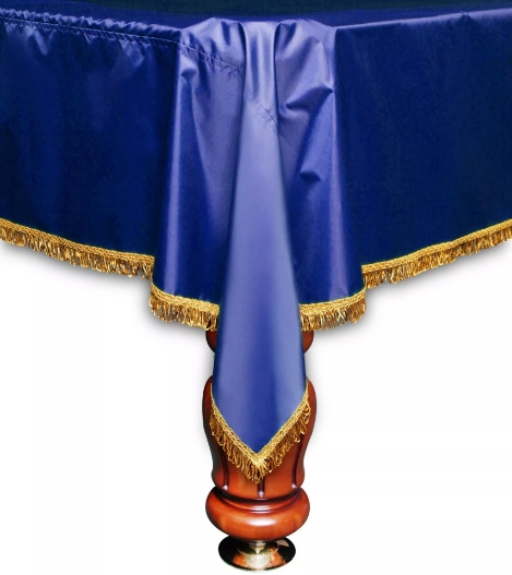 У нас вы можете приобрести специальное покрывало для бильярдного стола. Это очень стильное декоративное покрывало, которое выполняет не только свои основные защитные функции, но еще и декоративные, такое покрывало прекрасно украсит любое бильярдное помещение. Покрывало изготовлено из такого материала, как нейлон, а предназначено оно для бильярдного стола размером в 10 футов. Нейлон пропитан влагостойким веществом, которое не дает воде проникнуть сквозь полотно. У покрывала синий цвет и жёлтая бахрома по краям.